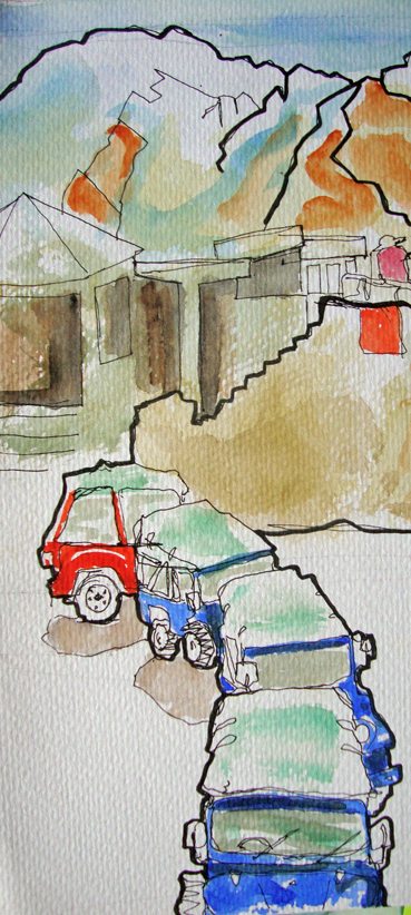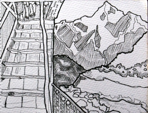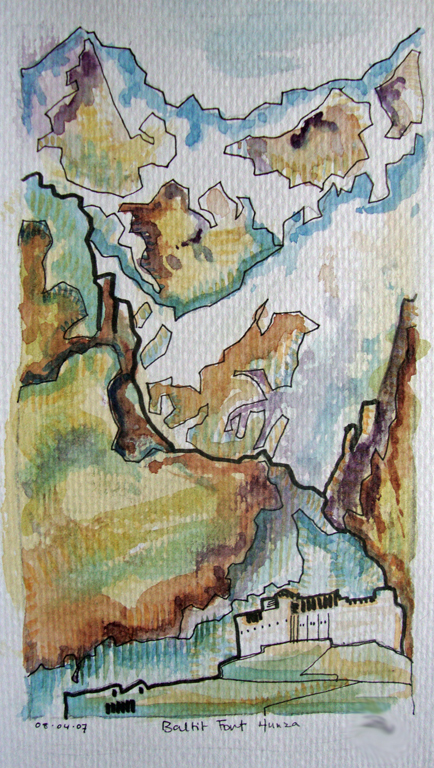 Way back in 2007, Husb and I went on a two week trip to Pakistan, travelling across the country with a group of Welsh, Danish and Pakistani companions in a large minibus. It was truly magical. Here are a few of the sketchbook drawings I did when we were up in the mountains in the Hunza Valley, using Faber Castell Pitt drawing pens and watercolours. I can’t believe it was almost 20 years ago!!!!!! Where does the time go?