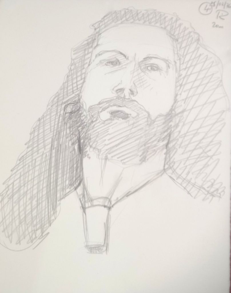 Here’s a cat sketch from November 2015 of Sparta Puss looking very cross. Nothing new there. She still looks cross. I used a ballpoint pen into a lined notebook.