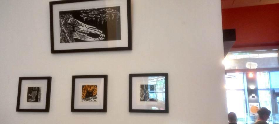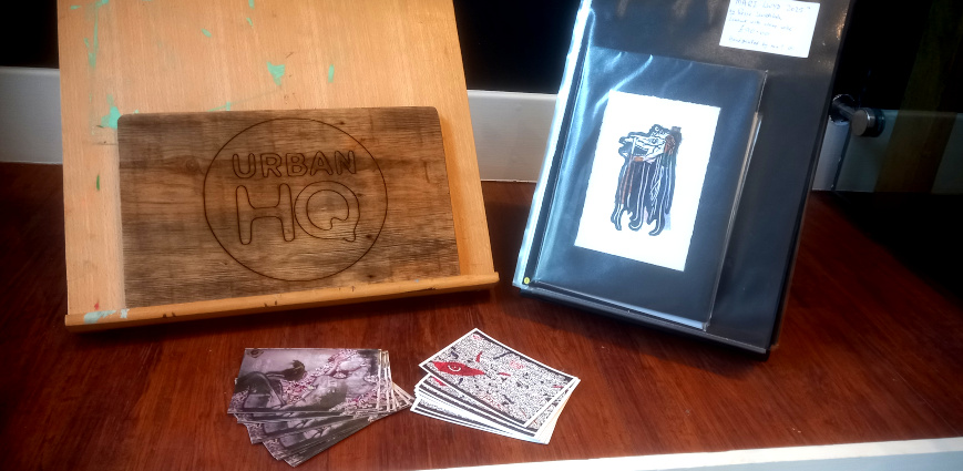 I have just started an artist residency at Urban HQ in Swansea. It’s a creative hub and café on the site of the old Police Station. I’ll be there throughout April, working on my linocut projects in the little gallery space by the Orchard Street entrance. As the month goes by, I’ll be exhibiting work on the walls and I will have art for sale.