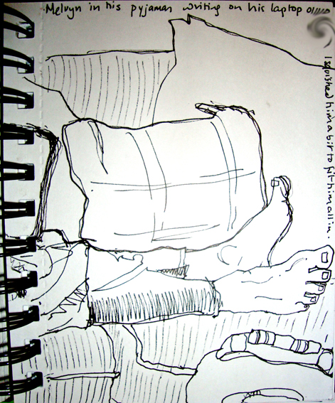 Call me old-fashioned but I draw almost every day and I make no apologies for that. I believe that drawing underpins visual art and that all artists should draw regularly to constantly improve what we do. Sometimes at the end of a long day I don’t really feel like sketching and it’s more out of duty than anything else and this is when feet come in really handy [see what I did there] as they’re never far away and they stay put, so I have quite a few drawings of my feet …… and my husband’s. It’s good practice because they’re not easy to draw so you get some anatomy and perspective practice as well. These ink drawings are in my sketchbook and they’re drawn using the continuous line technique with Faber Castell Pitt drawing pens.