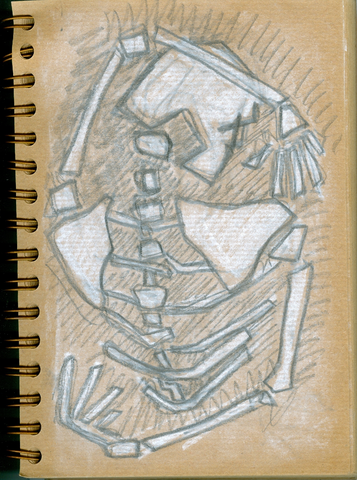 Sometimes it’s good to just have a scribble and see what happens. It becomes an automatic thing, undirected and not linked to what’s in front of your eyes. It’s a chance to feel the drawing medium under your fingers and feel how it moves across the paper. Yesterday was a bit manic; studio first thing, gallery duty in the afternoon, life drawing in the evening and by the time I got back at 11pm I was too tired to blog, so here’s yesterday’s blog. I normally do some cataloguing or admin on my laptop while I’m sitting in on exhibitions at the gallery but my laptop died so I spent the afternoon randomly scribbling sort-of-skeletons. It was fun and made me think how bits are put together instead of relying on drawing it from life.
