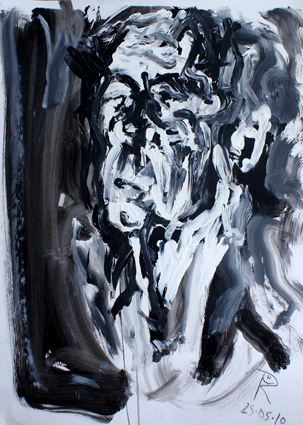 I’m not a painter. But sometimes I wander over to the dark side and have a go. Trouble is, I really don’t like paintbrushes. There’s just something a bit wussy about them. I like big fat sturdy Japanese rubber printmaking rollers and great big tins of stiff printmaker’s inks, not faffy little brushes and itsy-bitsy weedy tubes of runny paint. Now thats insulted all the painters I know lol. Anyway, this was one of my ventures into the dark side, but I couldn’t bear to use brushes so I indulged myself in a fun bit of finger painting instead. Not bad, but would be much better as a block print 😉