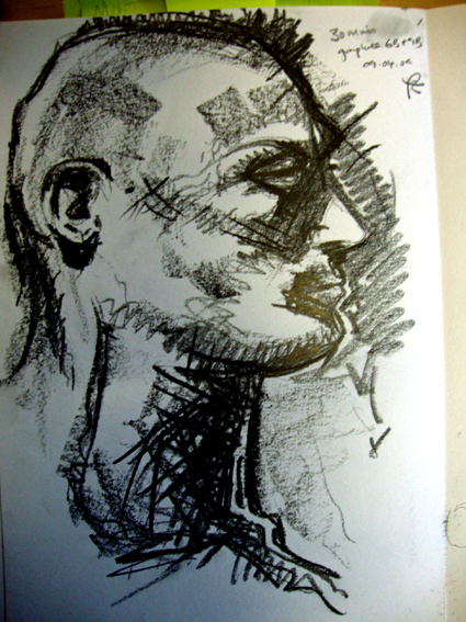 Charcoal drawing: male head.