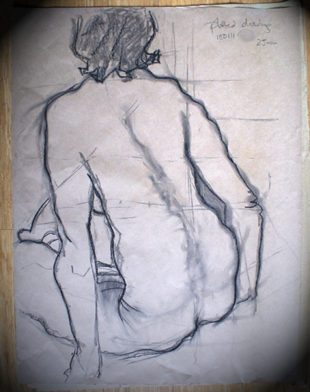 I’m an expressionist scribbler, preferring to draw freehand as much as possible. But now and again it’s good to get some discipline into my work to refine my technique. Here’s a plotted drawing I did a while back, using a very simple rough grid to plot the main points of the body and relate them to one another with some accuracy. These drawings will never be exhibited but they’re important, because they are the buidling blocks of our trade. These are the sort of things that most people never see – we show our polished, finished art but rarely the steps that lead up to it. I think that by not showing the practice pieces and the sketchbooks and the stages of development, we’re doing ourselves a disservice. How many times have we heard, “a child of six could do it”? Well, y’know, they couldn’t, because they haven’t spent years doing drawings like this to get things exactly right. So there 😛