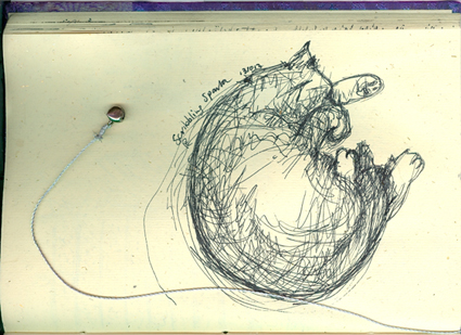 Haven’t done a scribble of Sparta Puss for a while, mainly because she’s so consistently naughty that we spend most of our time with her chasing the mice / rats / birds she brings in to rescue them and get them out of the house! But this evening she was in a very sweet mood and cwtched up next to me on the settee – where she was promptly scribbled!