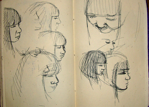 Did some sprog sitting over the weekend with a gaggle of small nieces and nephews, so I grabbed the chance to do some more scribbles of children’s heads. Weird little alien bonces are very hard to draw. The proportions are so difficult – they have impossibly huge eyes. I’ll get there …. one day ….. if I can stop them fidgeting so much. I suppose tying them to the chair isn’t allowed any more …… 😉