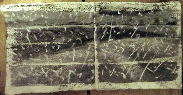 It was fun scribbling the snow on top of the smudged drawing of the beach – almost calligraphic.