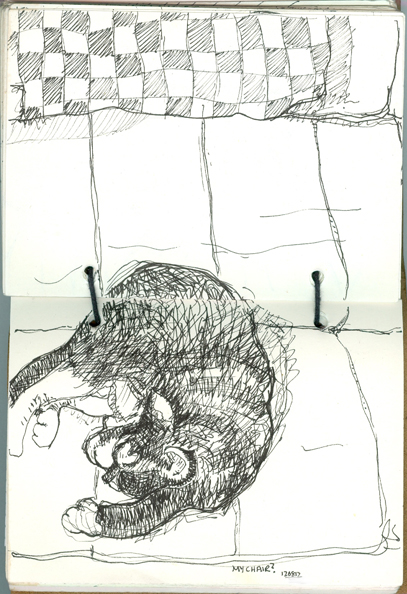 Although I sometimes think that WE’RE the ones who’ve been domesticated! Husb has secured the bottom of the bin and there doesn’t seem to be any more rat action inside the compost, but this evening’s corpse shows that they’re still coming round to take a look. I’m amazed that she can drag a rat through two cat flaps, across a large kitchen and down a long corridor in her tiny little jaws. She’s a very small cat. The top image is a photopolymer plate etching of Sparta and the lower one, a drawing from one of my sketchbooks.