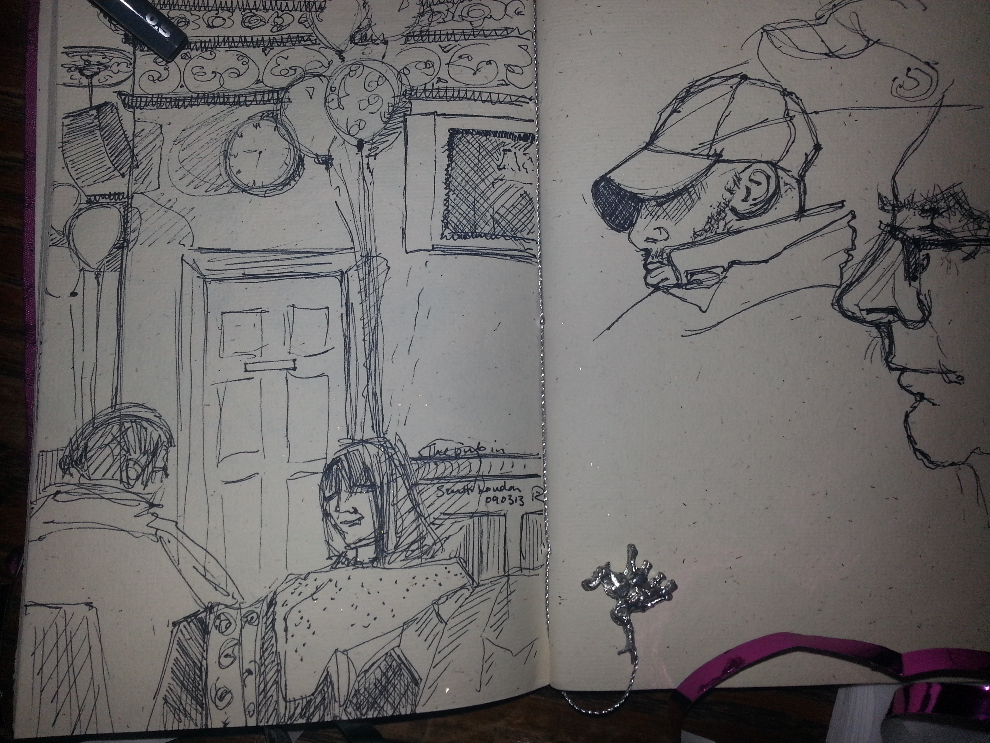 20130309_215514Husb has a brand new smart phone so I’m trying to blog from a South London pub where we’re celebrating a friend’s 60th birthday.  I did some scribbling on the tube on the way over and  another in the old pub in Southwark.  This phone is a bit of a pig to use so  that’s all from me.  Goodnight.
