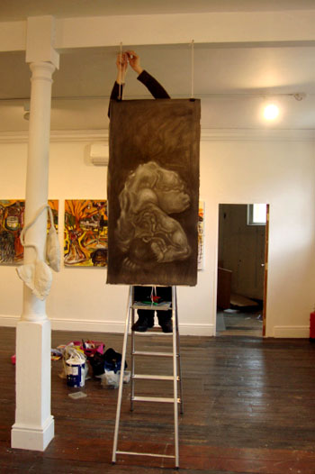 Today I was up in Bath with two other artists, filmaker Notsogreatdictator Smith and collagist Melanie Ezra, delivering some of our work to the Twelve:34 exhibition that will be a part of the Fringe Arts Bath event, opening this coming Friday evening. Here are two of my large ‘maniere noire’ drawings. If you’re in Bath on Friday, please call in for the opening from 6.30 pm 🙂