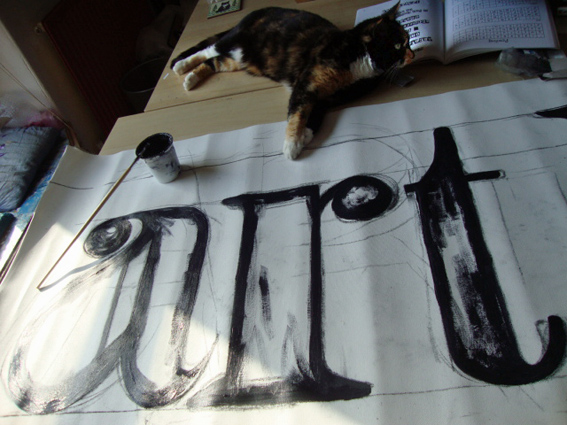 My studio has been invaded by two small furry feline felons! The little criminals have been sunbathing all over my canvas!
