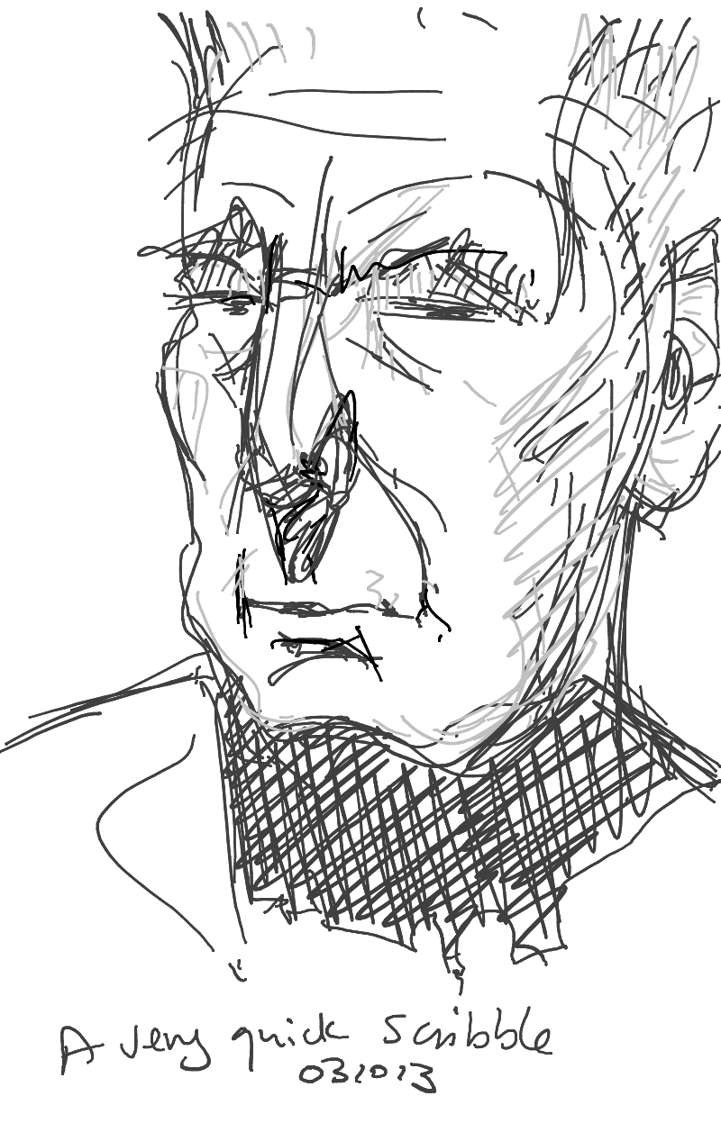 I went to the life drawing session at Swansea Print Workshop this evening and did a long,involved digital drawing on my Galaxy Tablet. I’m trying to get to grips with the Magic Marker app. About 5 minutes from the end I accidentally pressed the ‘off’ button and lost it ! So I did a 5 minute scribble and to be honest I’m happier with this one. I think there’s such a lot of things to play with on the app that the drawing can become overworked and lose the immediacy of the scribble.