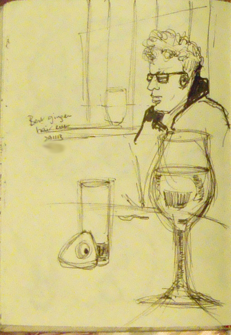 Husb and I went for a curry at The Vojon earlier to celebrate that I finished the 20 drawings and prints for my next exhibition. Any excuse for a curry. I had a garlic lamb frezi with sag rice and Husb enjoyed a chicken aloo johl and garlic rice, with poppadoms and a chutney tray. I took my sketchbook and drew this bloke opposite. He is one of the gingerest people I have ever seen. Not only proper carrot-ginger but also curly. And proud. Because he had teased his ginger curls into a marvellous confection of a hairdo. Flaunting it. Nice. Drawn with Faber Castell Pitt drawing pens, size F and B in sepia. And then, Marvel’s Agents of Shield. Marvellous. What a great evening 😀