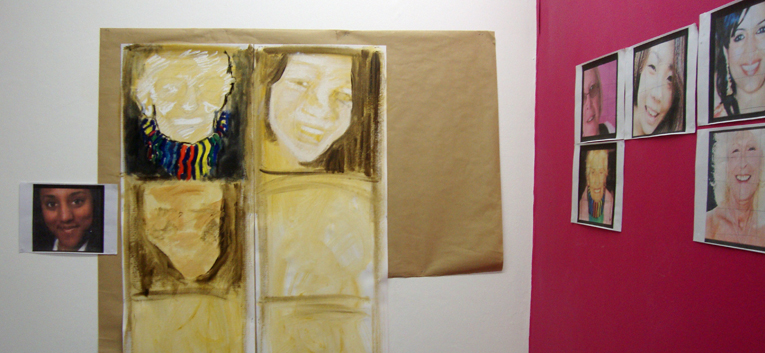 Day 2 at the last 15 Hundred Lives art event at the Creative Bubble Artspace in December and I continued to sketch out some of the faces of women murdered in Britain during the year, 199 at the time. Unusually I’m using canvas and some paint, along with oil bars which I worked into the canvas with rags dipped in linseed oil. The idea came from Karen Ingala-Smith’s blog, Counting Dead Women. It’s a harrowing indictment on our society that we still have not come to grips with serious violence to women.