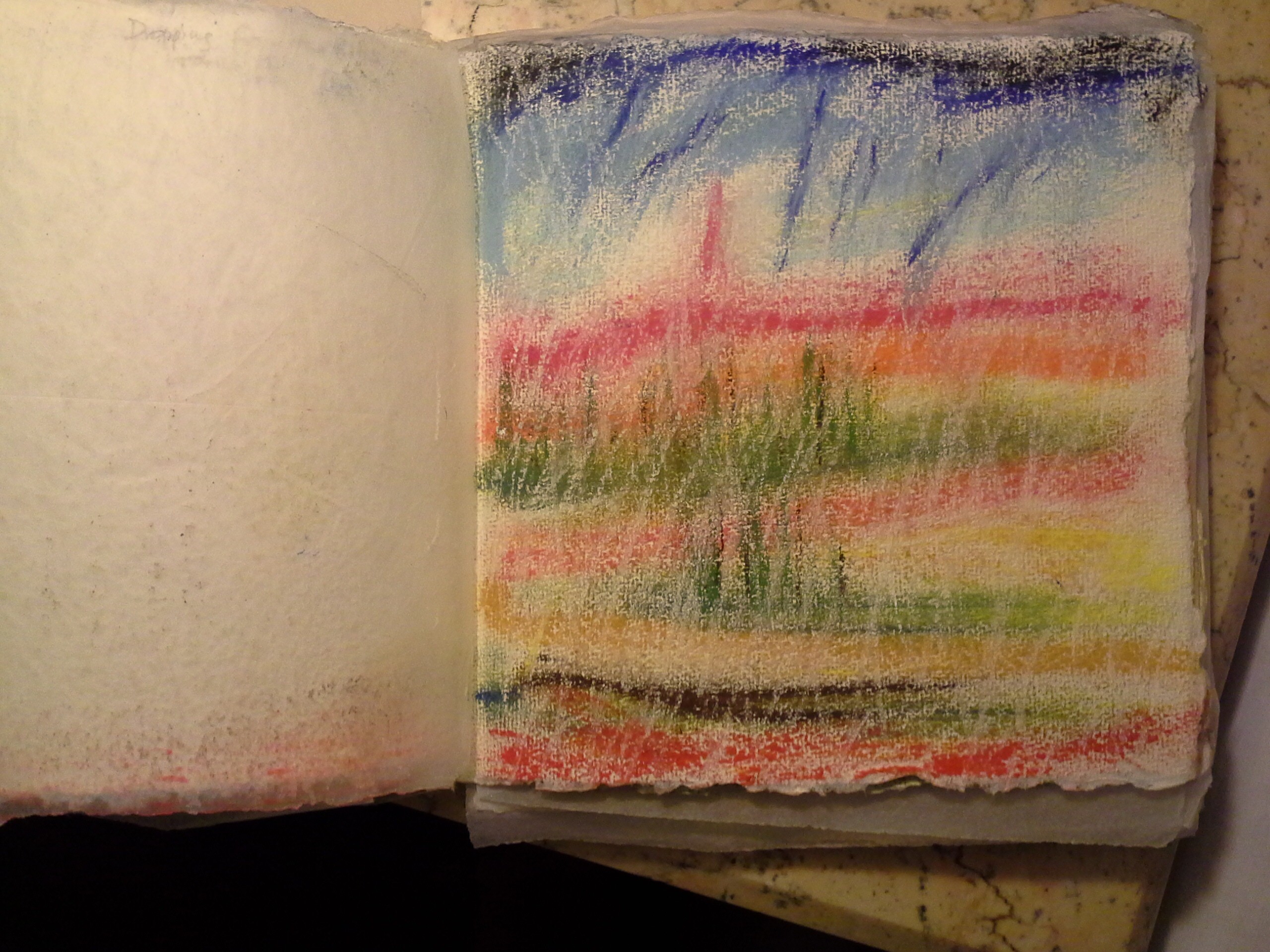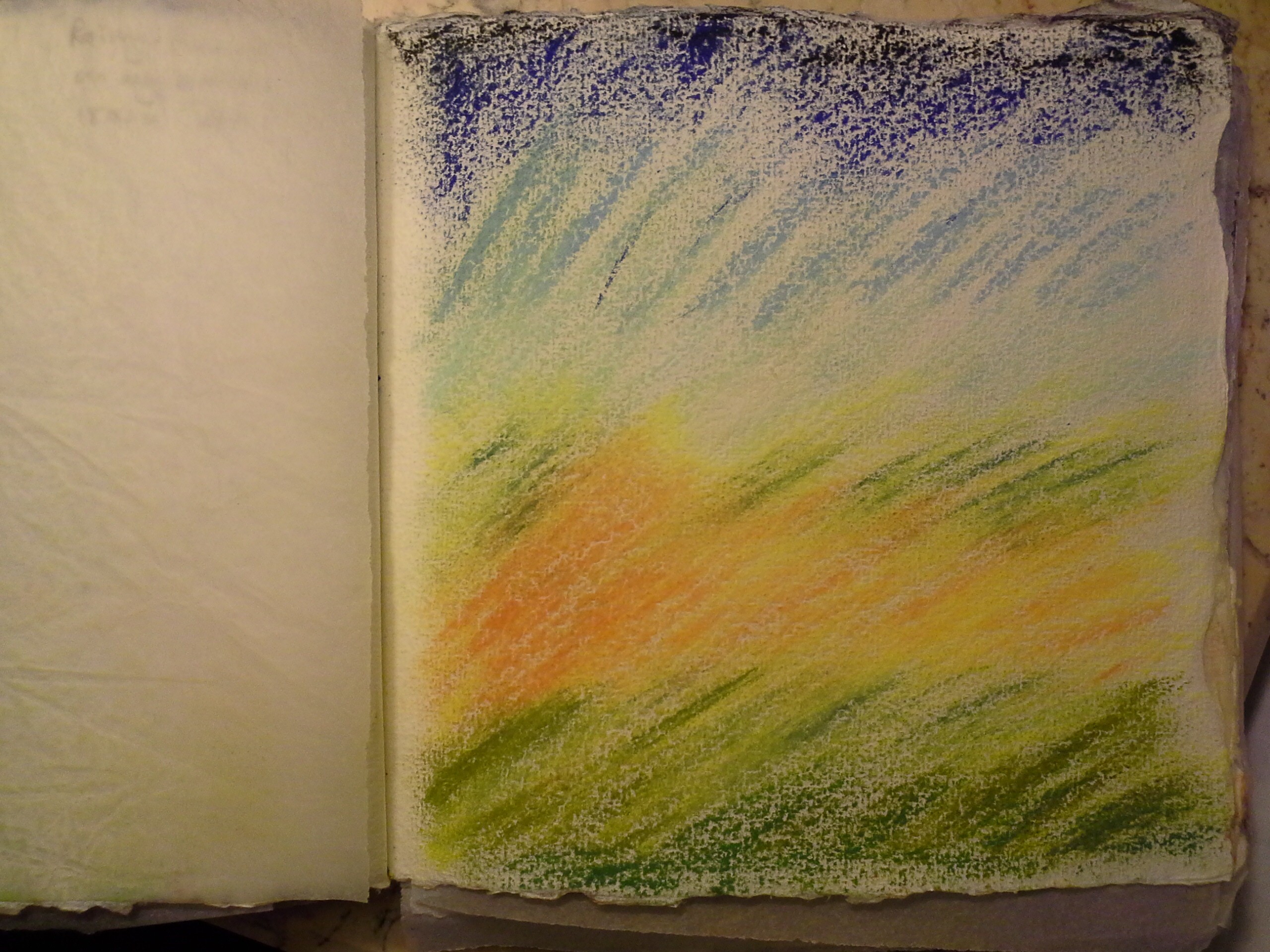 Drawn into my small square Khadi sketchbook using Daler Rowney soft pastels.