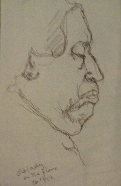 This is the very last drawing I did on my Pakistan residency. I drew this elderly lady as she slept on the plane journey on the way back from Kuwait, into my little A6 sketchbook using a Faber Castell Pitt drawing pen size S.