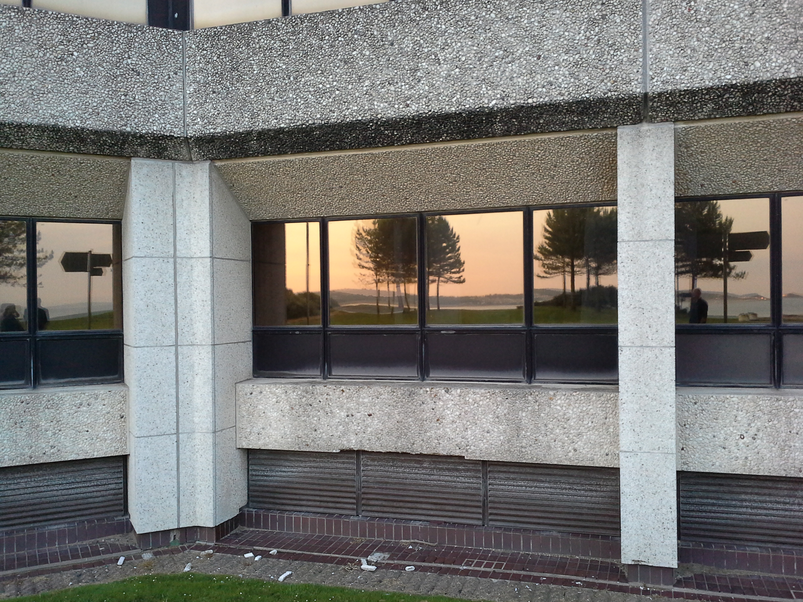The beach was reflected in the windows of the civic centre. It’s lush.