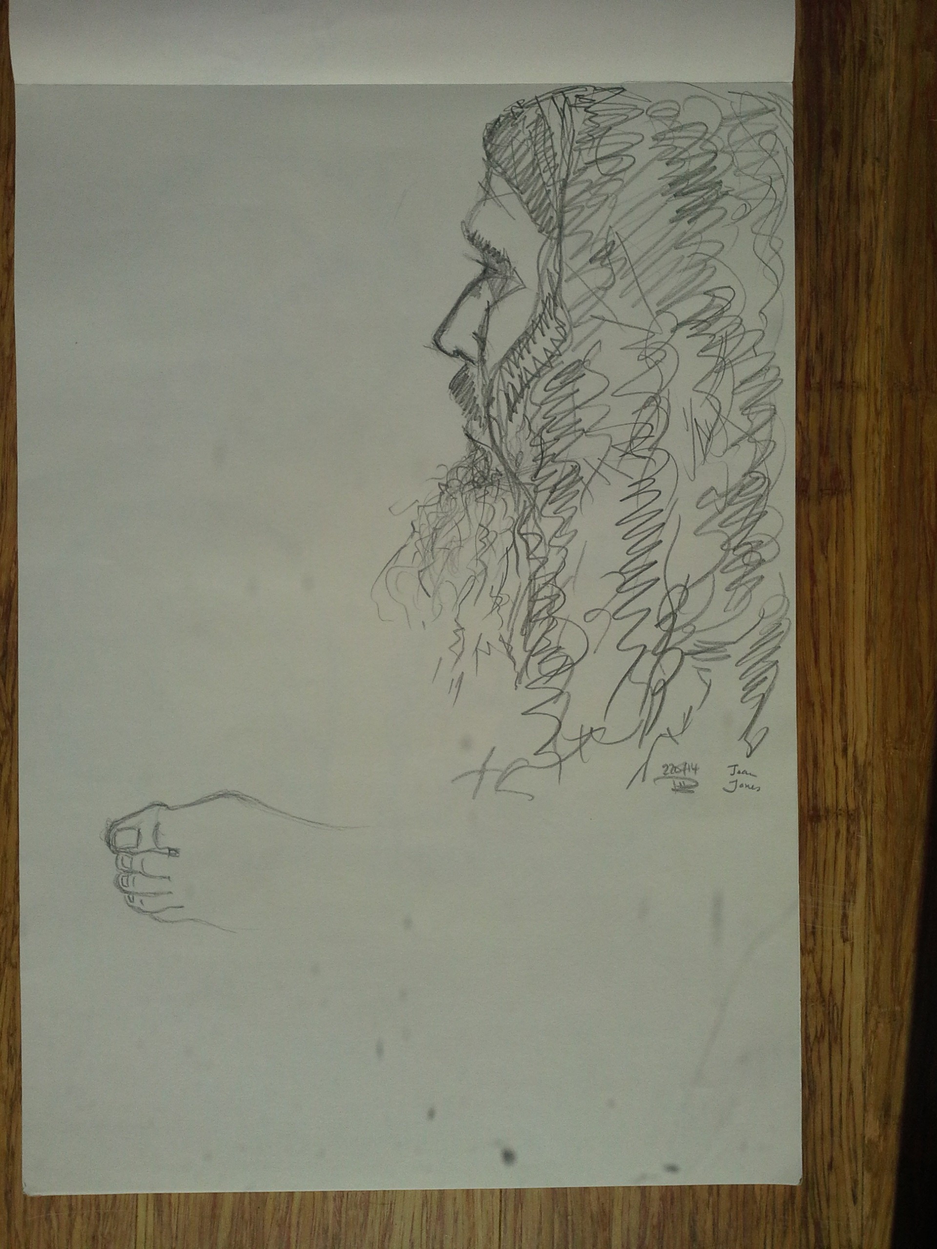 Our model has a very distinctive face and great hair and beard. I find facial hair a real challenge to draw because it’s hard to see the underlying structure.