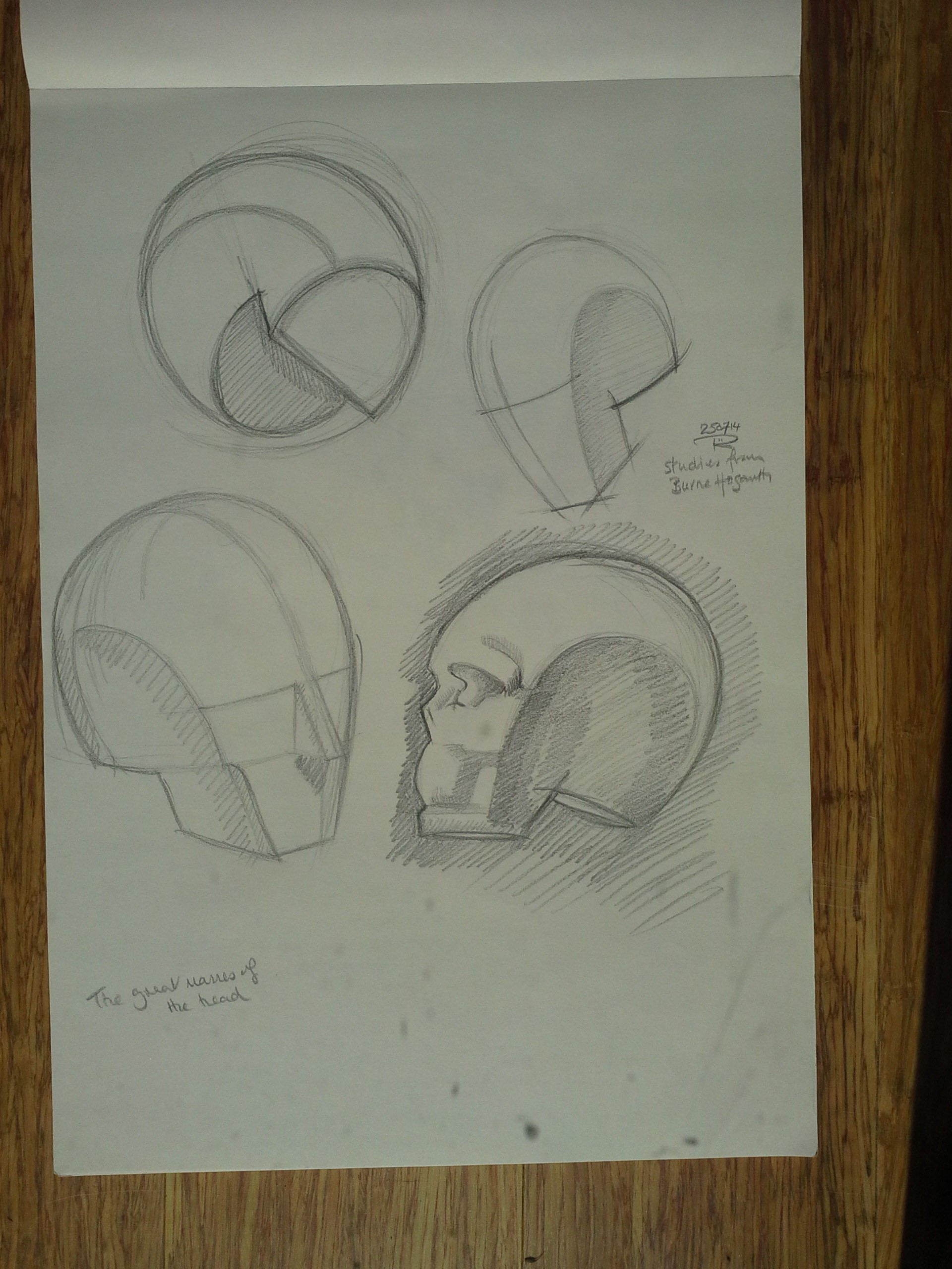 Today, I spent some time doing technical studies of heads from Burne Hogarth’s book on dynamic anatomy and then went off to the beach. I squeezed into a tankini and went for a dip in Swansea Bay. It’s the first time I’ve taken the plunge in years. It was gorgeous. I don’t know why I don’t do it more often. Yes I do. It’s because the weather is usually awful. I covered myself with sunscreen so I wouldn’t turn puce like I did the other day.