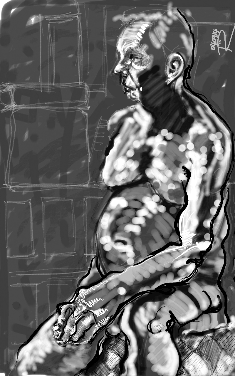 Just back from life drawing at Swansea Print Workshop with a new digital sketch on my Samsung Galaxy Tablet Note 8 using the free Markers app. This is an older male model that I really enjoy drawing. Time for bed now though.