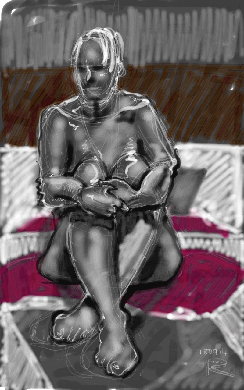 Just back from life drawing at Swansea Print Workshop with a new digital life drawing done on my Samsung Galaxy with a free Markers app. This is one of our older models whose face and body are full of character built up over a lifetime of experience.