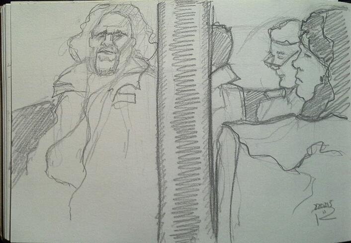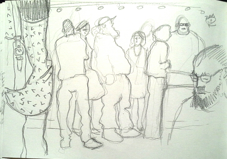 Standing in a queue is a good opportunity to do some crowd sketching. I like to draw individuals because, to be honest, it’s easier. But I shouldn’t stay in my comfort zone so I did these two crowd sketches when I was standing in a queue yesterday. Drawing in a crowd forces you to bring proportion and perspective into the composition. I drew with a graphic stick into my A5 Tate Gallery sketchbook.