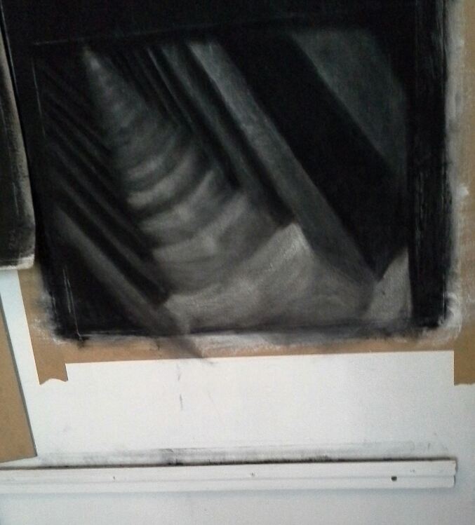 I spent some time in my studio today, starting a ‘manier noir’ style drawing. It’s a type of reductive drawing, working from black to white, rubbing away areas of charcoal to reveal the highlights. It’s the very first of a substantial body of drawings and original prints I have planned.