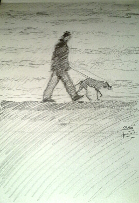 So these photos are for research into how people and animals move and also to develop a shorthand of marks to represent the sea, which is something I have enormous difficulties with. Hopefully as the days go by, my drawings and mark-making will improve. I’m using graphite sticks into my A5 Tate Gallery sketchbook.