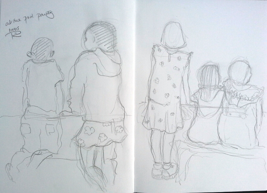 Of course, I had to have a scribble or two. They’re very speedy sketches, kids are fast moving targets. They have such impossibly skinny legs, like bambis, you wonder how they can walk. I used graphite into my A5 hardback sketchbook.
