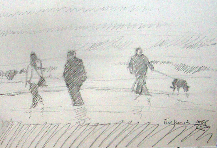 Now and again, I pop down to the local beach to take some photos for drawing practice. This was a typical Swansea winter day, grey, drizzly with lots of dog walkers. I used a graphite stick into my A5 hardbacked sketchbook.