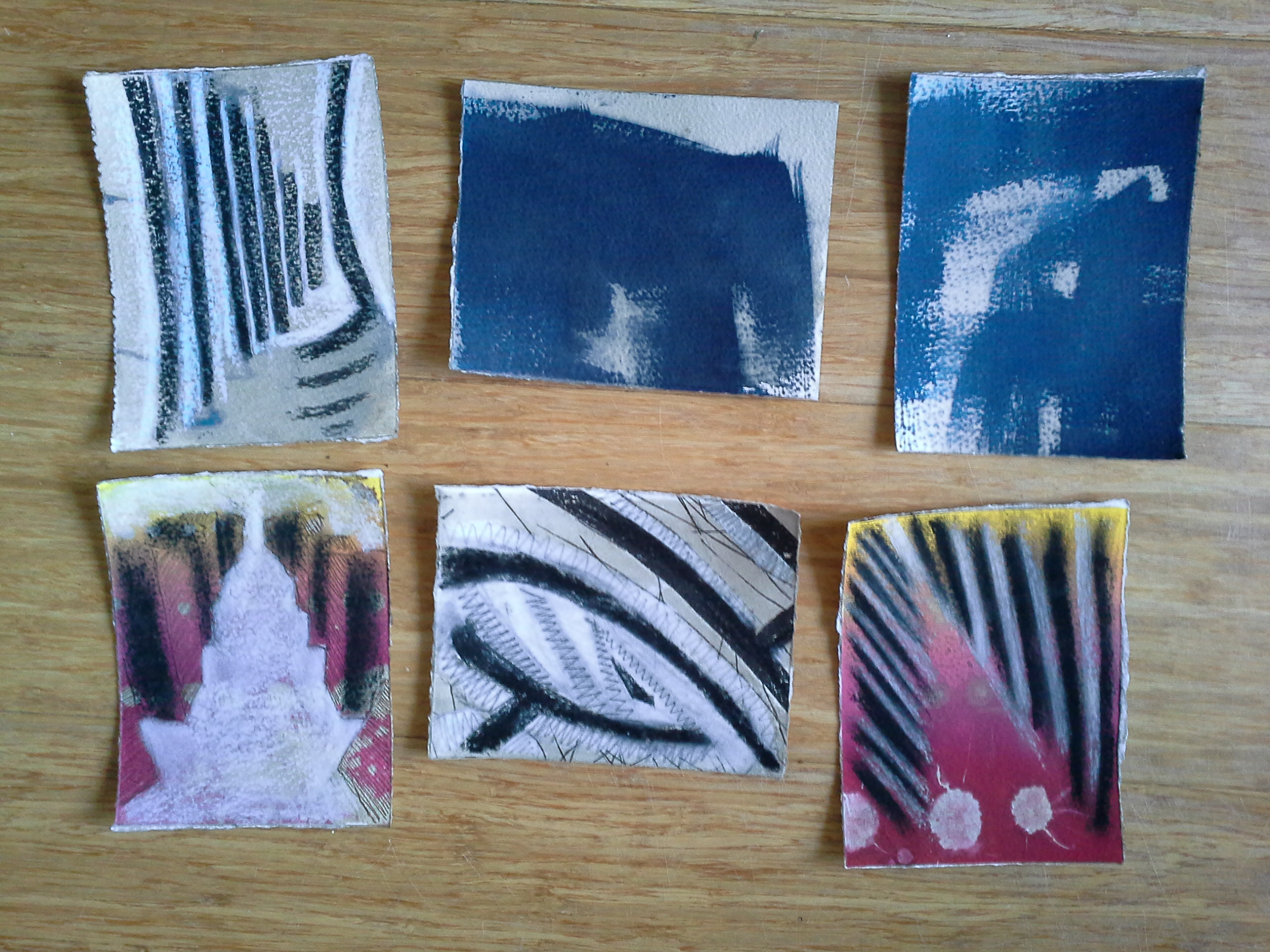 Trying something different today. Normally I work directly from life but I started drawing intuitively, using tiny fragments of lovely papers. Most of them had been prints that hadn’t worked out so I am recycling them. I don’t know where it will lead but that’s what doing art is about, constantly pushing and trying to do new things. I’ve made a start on these little papers and I will carry on working on them tomorrow. If they don’t work out, I can gesso over them and start again.