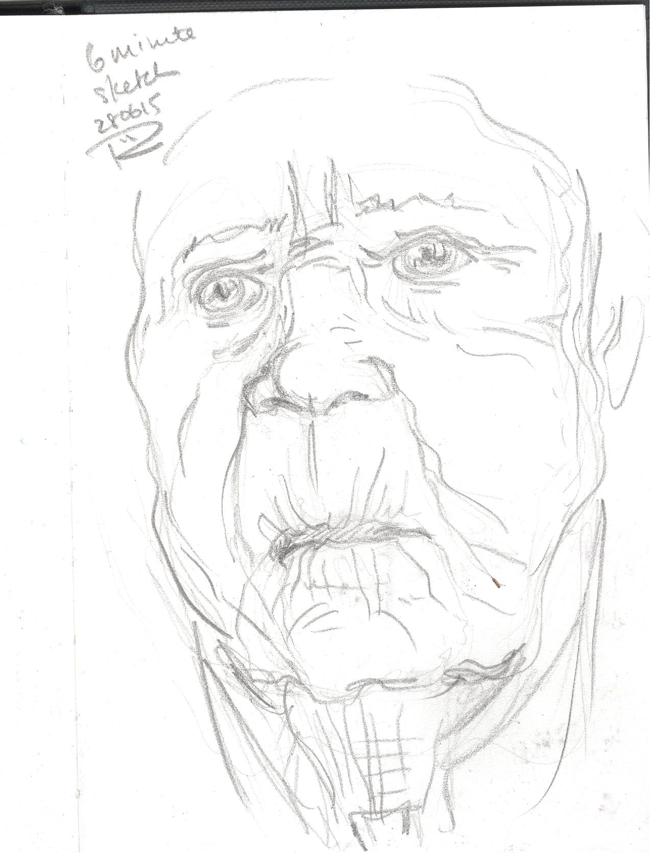 Today is Sunday and one of the problems with being self-employed is the temptation not to take any time off. Well, today I gave myself some down time and chilled out with family, went for a long walk on the beach, nattered with friends, watched Glastonbury on the telly (Lionel Richie was AWESOME)…… So I didn’t have anything to blog!!! I Googled some images of elderly ladies’ heads and did a strictly timed six minute sketch from one of the photos a few minutes ago. So I managed a daily piece of art and a blog. Result 😀