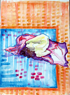 That ‘pattern’ background is quite intriguing. I am trying to understand what I am responding to (BTW this is a positive response). I think it is the contrast with the more fluid lines of the body and the two sets of colour contrasts. It is probably too long ago to recall but it would be interesting to know whether these were conscious choices. Anyway it would be an interesting approach to deliberately take in making a painting. I hope this makes some sense.