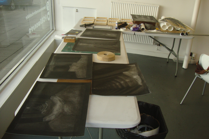 The boring, mundane side of being an artist. It isn’t all about creativity. I have an exhibition coming up next week and the work has to be framed and, being a skint artist, I can’t afford to take over 2 dozen works to the framers so I’m knuckling down and doing it myself. It’s a mixture of linocuts and drawings, a new body of work.
