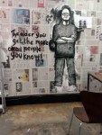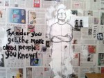 I’m liking the newspaper wall. I was watching a renovation show on the tellie this week and the people newspapered the walls prior to putting up the wall paper (period style for the 1850-s). I liked that effect without the wallpaper! But as my partner pointed out they would yellow over time. Speaking of which I had an interesting chat with a paper conservator about using newspaper in my drawings – not a good idea for long term survival