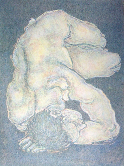 I did a small series of full colour reduction monotypes a few years ago, working with a young soldier I know who is also a life model when he’s on leave. He loves modelling and he’s really good at it. From an artist’s perspective, it’s fascinating to work with a man in the prime of life who is in the best possible physical condition, not overdone like a body builder but as fit as it’s possible for a human male to be.
