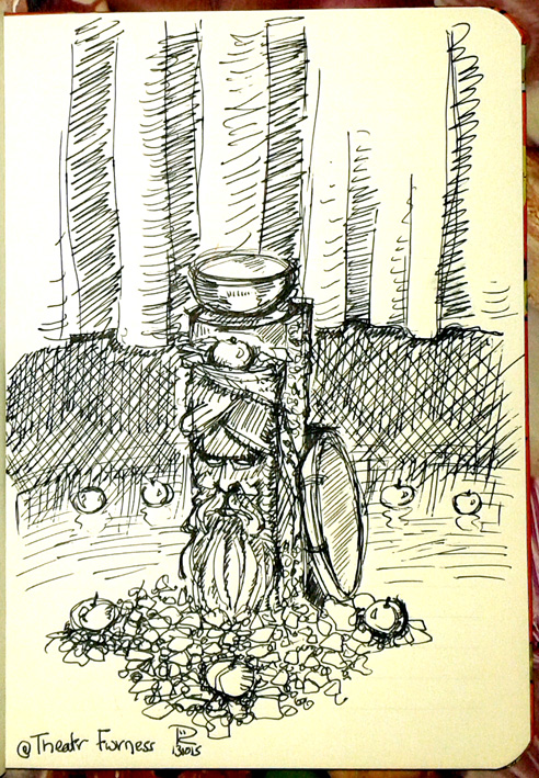 At the centre of the stage area was a beautiful Green Man carved from a piece of tree trunk, surrounded by tree bark and large harvest apples. A singing bowl sat on top of it and rang out during the intense and evocative performance. Thoroughly enjoyed it, but the bottle of Dandelion & Burdock I had during the interval has quite gone to my head 😉