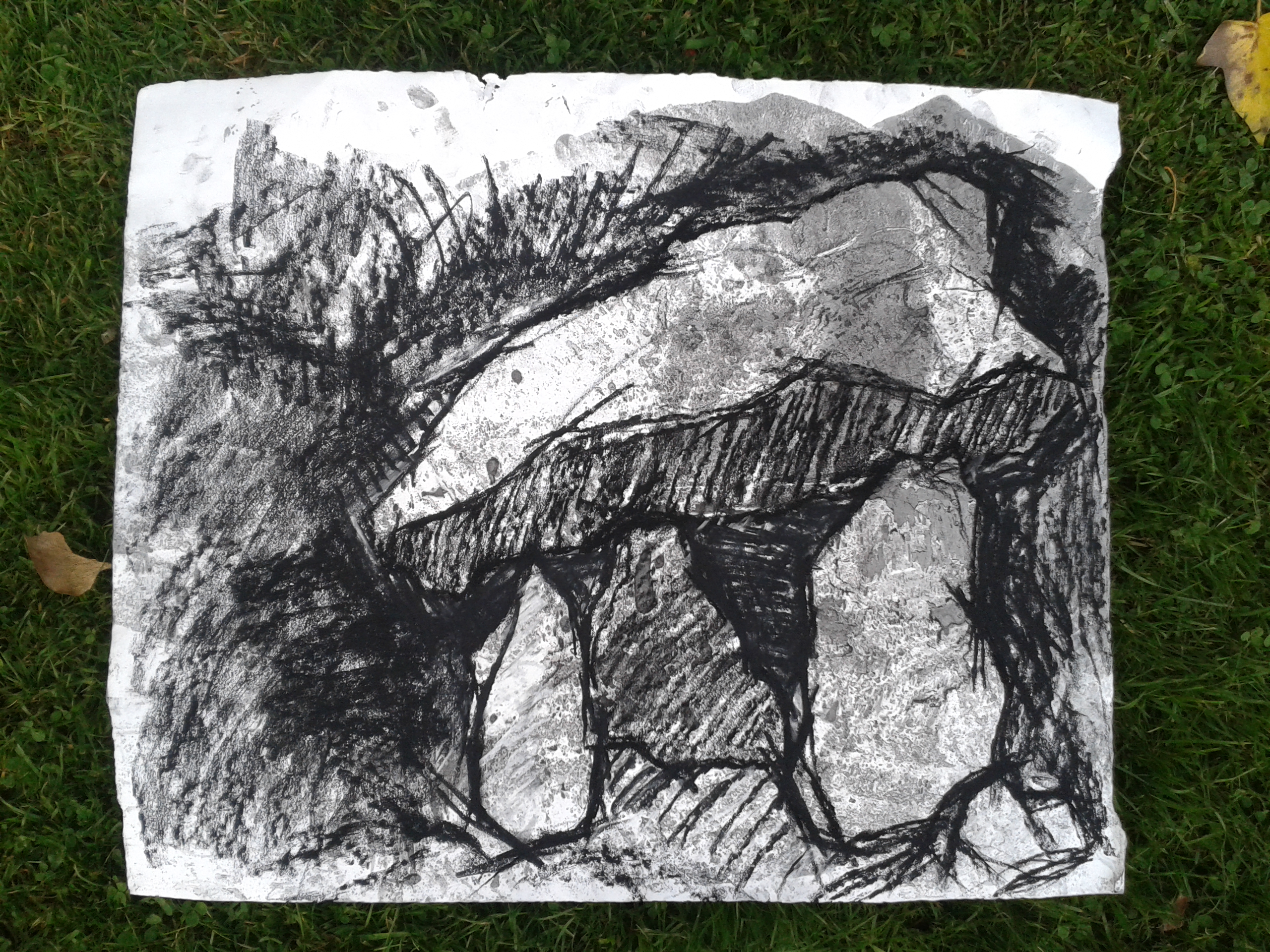 I’m drawing dolmen in Pembrokeshire. I used compressed  charcoal onto marbled Fabriano paper.