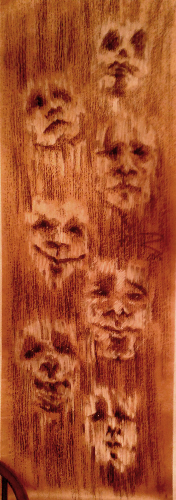 It’s been a long hard day of arty shenanigans. I started early this morning playing a ranting judge in a short film being made by friends. Then onto a second day of drawing in public at the Creative Bubble artspace in the city centre – I do this for a couple of days a month with the 15 Hundred Lives art collective. A quick bite to eat and off to a Halloween Shin-Dig nearby with some groovy people who have taken over an old shop and are developing it into a community cultural centre; early days yet but it looks very promising. I did some more spontaneous drawing there, some faces looming out of a long sheet of brown wrapping paper – well it is Halloween after all. And finally to one of the Elysium events – an open studio which was buzzing. A quick bit of blogging then off to bed because I’m plumb tuckered out. Goodnight 😀