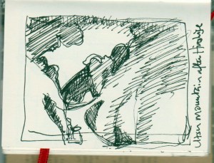 In my small sketchbook, I made some little studies of the beautiful simple compositions of some of the prints. Most had very sparse detail and the artist’s original line drawings are usually quite basic. The richness of pattern and colour are down to the skills of the printmaker who often used a blending technique called Bokashi which gives beautifully graduated colours. Ukiyo e prints became very fashionable through Japonism and had an enormous influence on later 19th century and 20th century European art and artists including the Impressionists and post-Impressionists and individual artists including Cassatt, Degas, Toulouse-Lautrec and van Gogh.