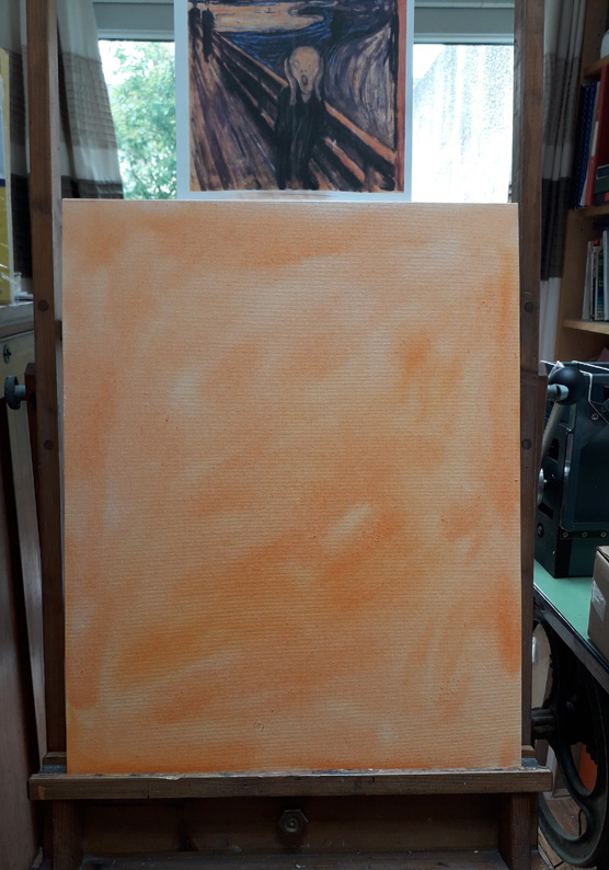 I’ve finished my fake painting of “The Scream” by Norwegian artist Edvard Munch. He made several versions of the same topic, in paint, pastel and lithography, and I copied this little-known one that he painted after a visit to Swansea in 1893. There was a large Norwegian presence in South Wales at the time with Norwegian churches on the docksides of Swansea and Cardiff. The famous author Roald Dahl is one of the Norwegian Welsh and there were many Norwegians living, working and settling in the two Welsh ports. Although most of Munch’s versions were based on a fjord overlooking Oslo, this one clearly shows the distinctive coastline of Mumbles in the background, as it would have been viewed from the Swansea promenade.