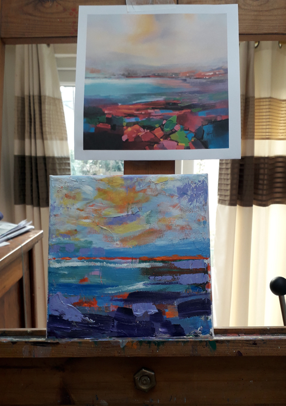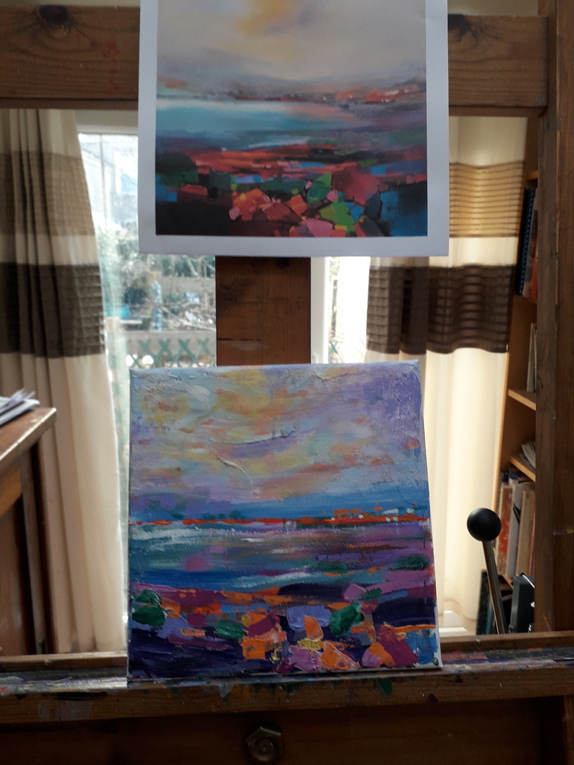 Back to Friday lunchtime Cheese and Wine Paint Club with Ed Sumner on Facebook today. An abstract landscape this week, not my type of thing if I’m honest but I learnt a lot about applying and layering paint. I used Liquitex Heavy Body acrylic onto a small stretched canvas, using brushes, palette knife and fingers.