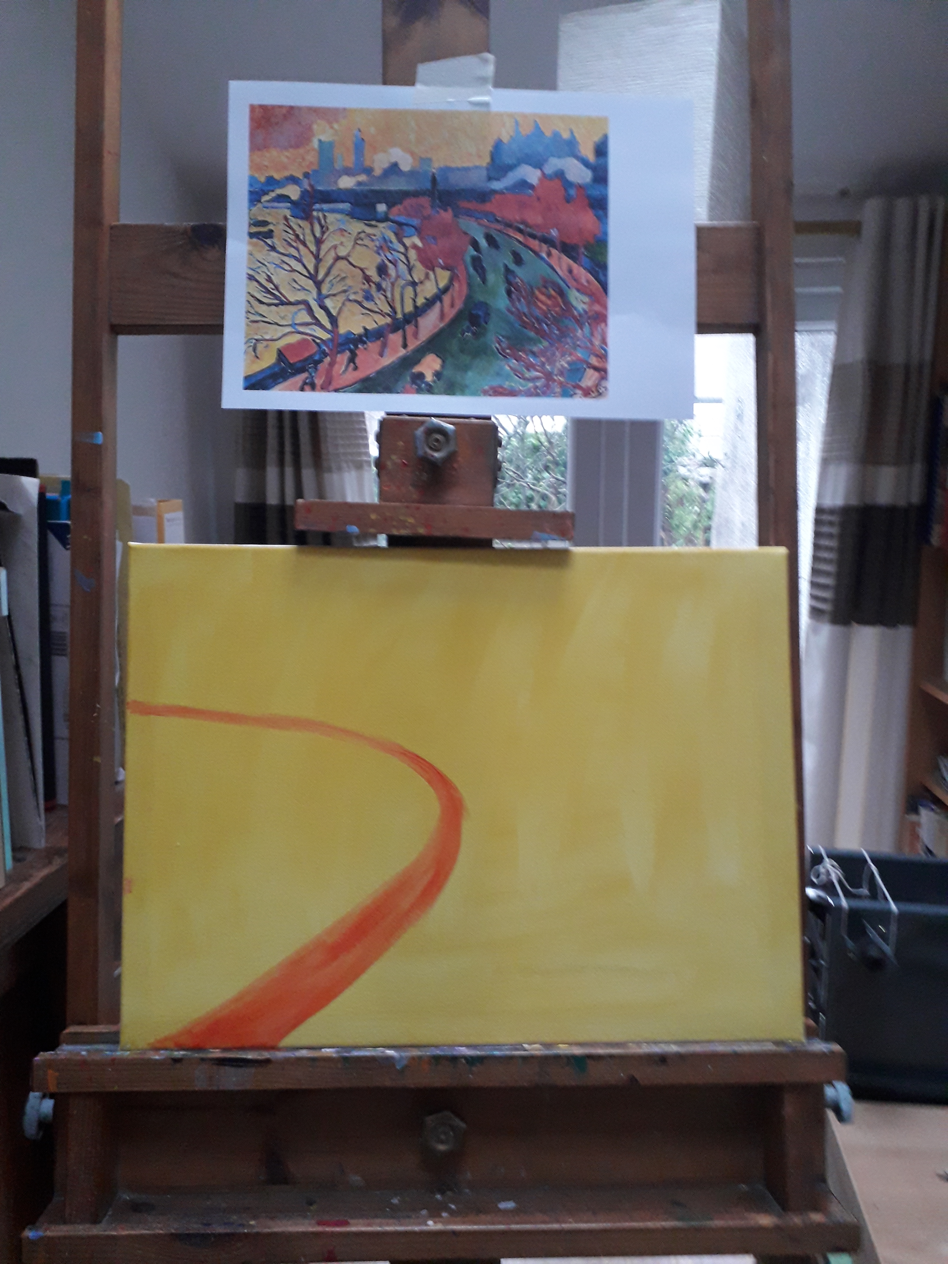I’ve just finished copying this painting, “Charing Cross Bridge” by the 20th century Fauvist artist Andre Derain. It was great fun and I learned a lot too. I’ve done almost 40 fakes now with Ed Sumner’s Cheese and Wine Painting Club on Facebook on Friday afternoons throughout the lockdown.