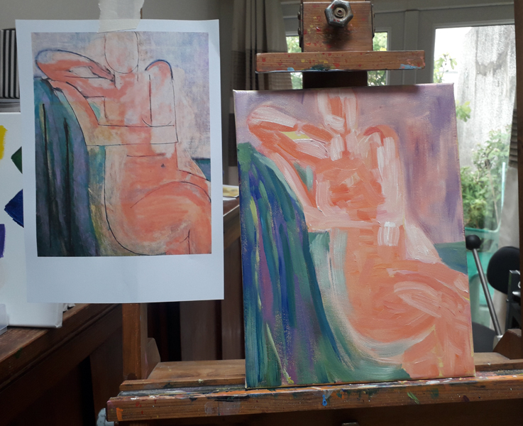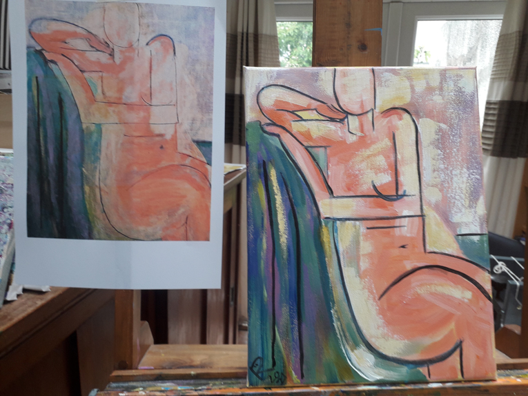 It’s Friday so it faking a masterpiece day, with Ed Sumner’s Cheese and Wine Painting Club on Facebook. He started it at the beginning of the first lockdown in March 2020 and has carried on, I think we’re up to about 60 weeks now. This is a nude study by Henri Matisse. I used Liquitex Heavy Body acrylic paint onto a small stretched canvas.
