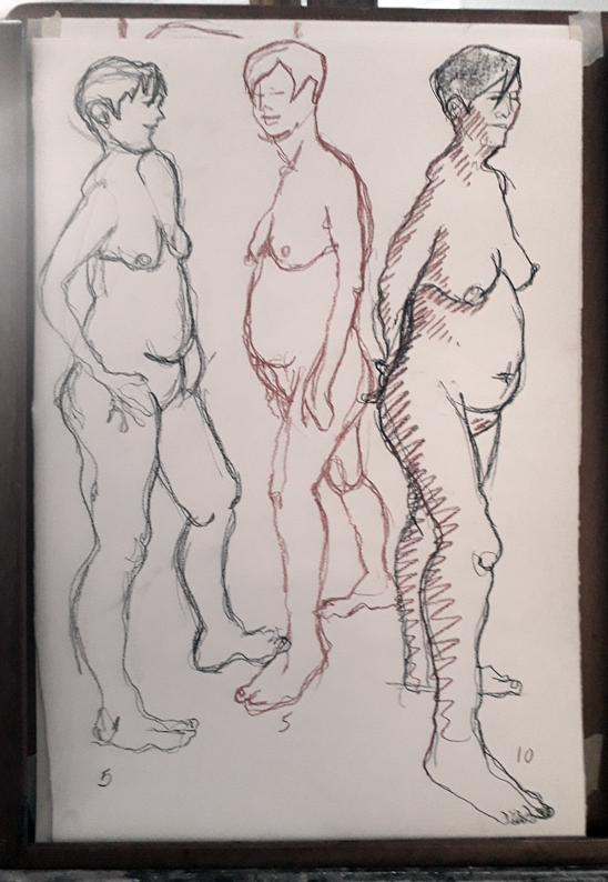 Just back rom life drawing at Swansea Print Workshop. Good session tonight. Lovely model and I really got into the zone. Here are the warm up drawings, two five minute poses and then a ten minute. I used conte crayon onto some vintage paper I have knocking around. I love the shorter poses because they tend to be more lively, more movement, more of the essence of the model.
