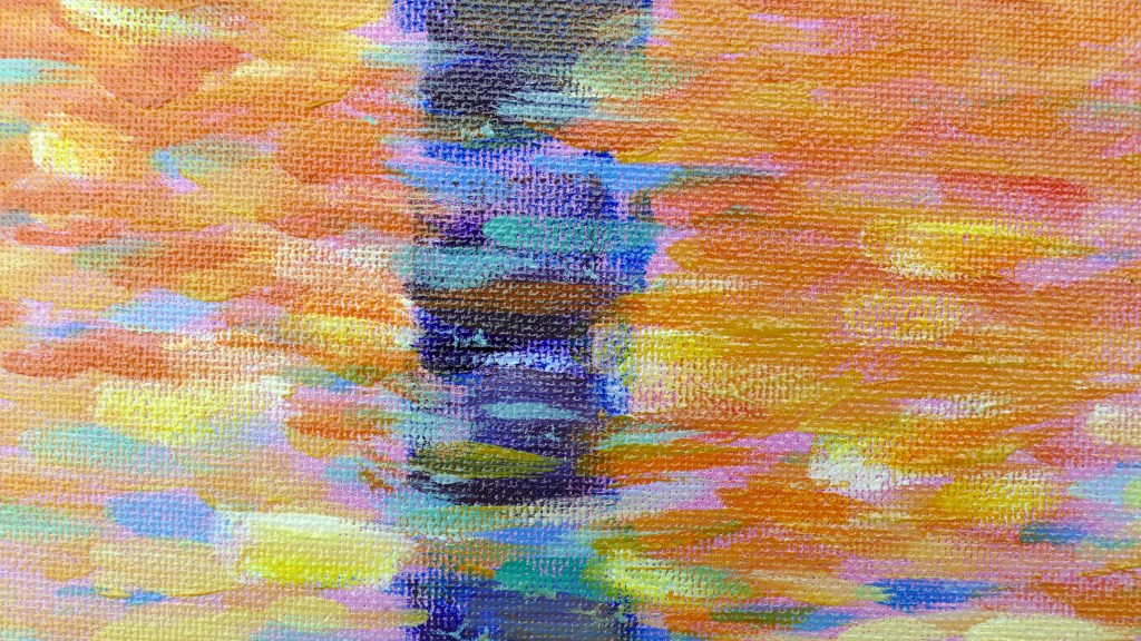 This is my painted copy of an original painting that’s here in Wales. It’s French Impressionist Claude Monet’s “San Giorgio Maggiore At Dusk“. He painted it in the first few years of the 20th Century, when he was quite elderly. He loved the sunsets in Venice and started his paintings there, but took them back to his home in Giverny to finish them. The original was donated to the National Museum of Wales in Cardiff by Gwendoline Davies. Claude also painted another version, I think it’s even brighter than this, and it’s in Tokyo.