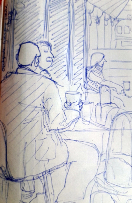 Here’s a little scribble I did in my sketchbook the other week when I was waiting for the train back from Glasgow. What a brilliant city, I loved it. I like doing these tiny drawings of everyday life into my sketchbook, just little slices of normality which mean more to me than ever before after 16 months of the pandemic.