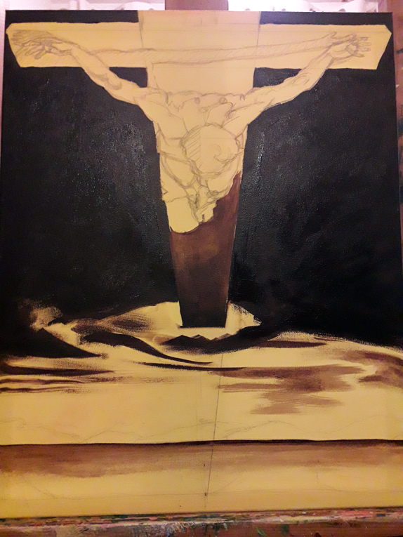 Started faking Salvador Dali’s painting “Christ Of Saint John Of The Cross” this evening with a Zoom tutorial by the painter Ed Sumner. Good to study this one up close and really get into the process of how Dali put it together. It’s all about the life drawing. At this stage anyway. Tutorial part 2 is next week. Tired now, off to bed……