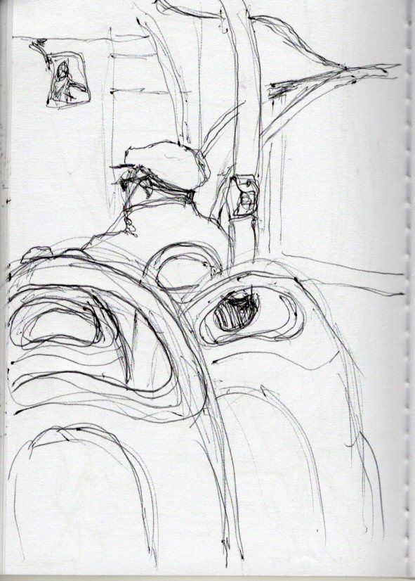 I didn’t go on public transport for ages because of the pandemic, but as the lockdown lifted I started using the bus occasionally to get to Waun Wen for my community arts project. I had to have a scribble of course. Usually there are not many people on the bus and so far everyone I’ve seen has worn a mask.