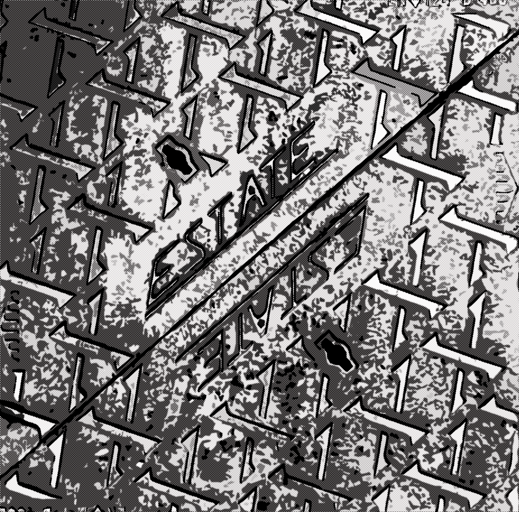 I did some more preparation today, using source photos of manhole covers around the Waun Wen area of the city (taken by Melvyn Williams). I used Adobe Photoshop and put them through some filters and turned them black and white. I added halftone dots to a few and a couple I turned into negatives. I’ll print them out onto acetates to use as stencils for photographic silkscreens. It’s all very tecchie – I love it!